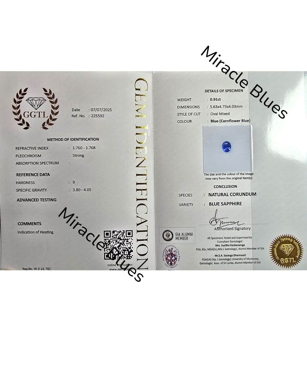 0.91CT | Cornflower Blue Sapphire | Natural Heated | Oval Mixed | Certified
